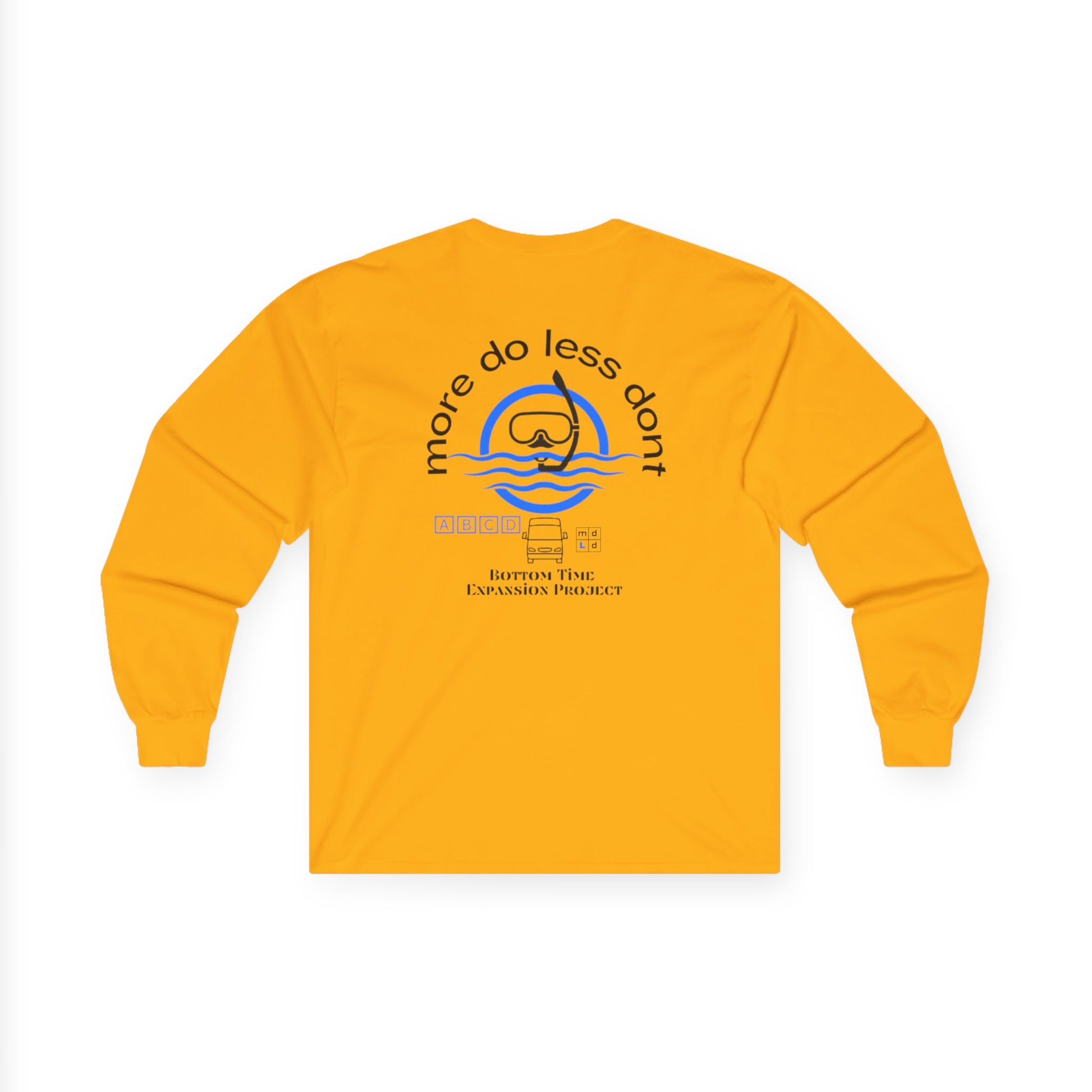 A bit more formal than a standard-issue t-shirt, the ultra cotton long sleeve tee is a clear comfort winner. The sleeves also act as a nice frame. There are no side seams. The shoulders are taped for improved durability. This makes for a good fitting around the shoulders and neck. The cotton used for these shirts is environmentally friendly.