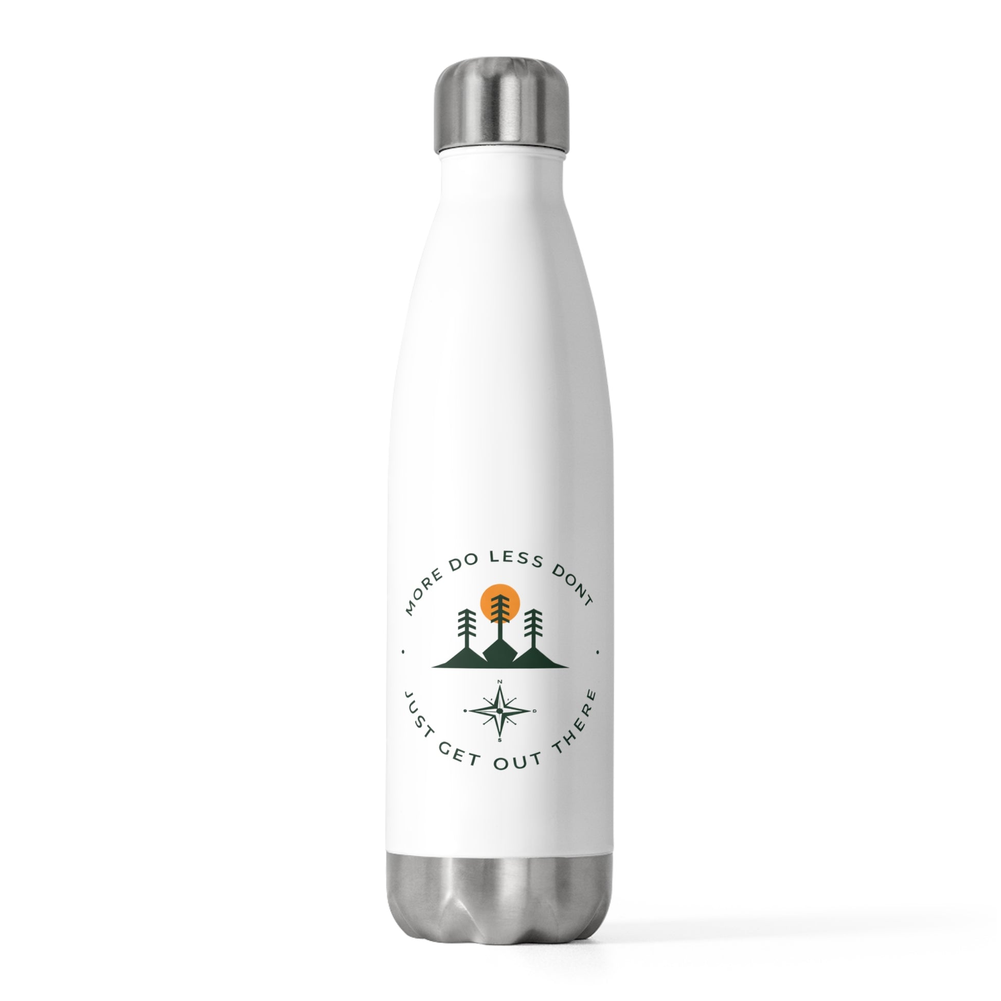 This 20 oz insulated bottle carries a quiet, outdoorsy spirit—clean white finish, stainless-steel accents, and a small compass-and-pine emblem that nods to wanderlust and slow, deliberate travel. It slips easily into bike cages, backpack side pockets, and car cup holders so you can bring a steady sip wherever the trail or city takes you. The double-wall insulation keeps coffee warm on a cool morning and water cold through a sunlit hike. The screw-top with a silicone seal screws tight for spill-free commutes, while the lightweight stainless body stands up to day-to-day knocks without weighing you down. For people who like to move—hikers, bike commuters, and anyone who enjoys time outside—this bottle feels like a dependable companion that quietly earns its place in your routine.