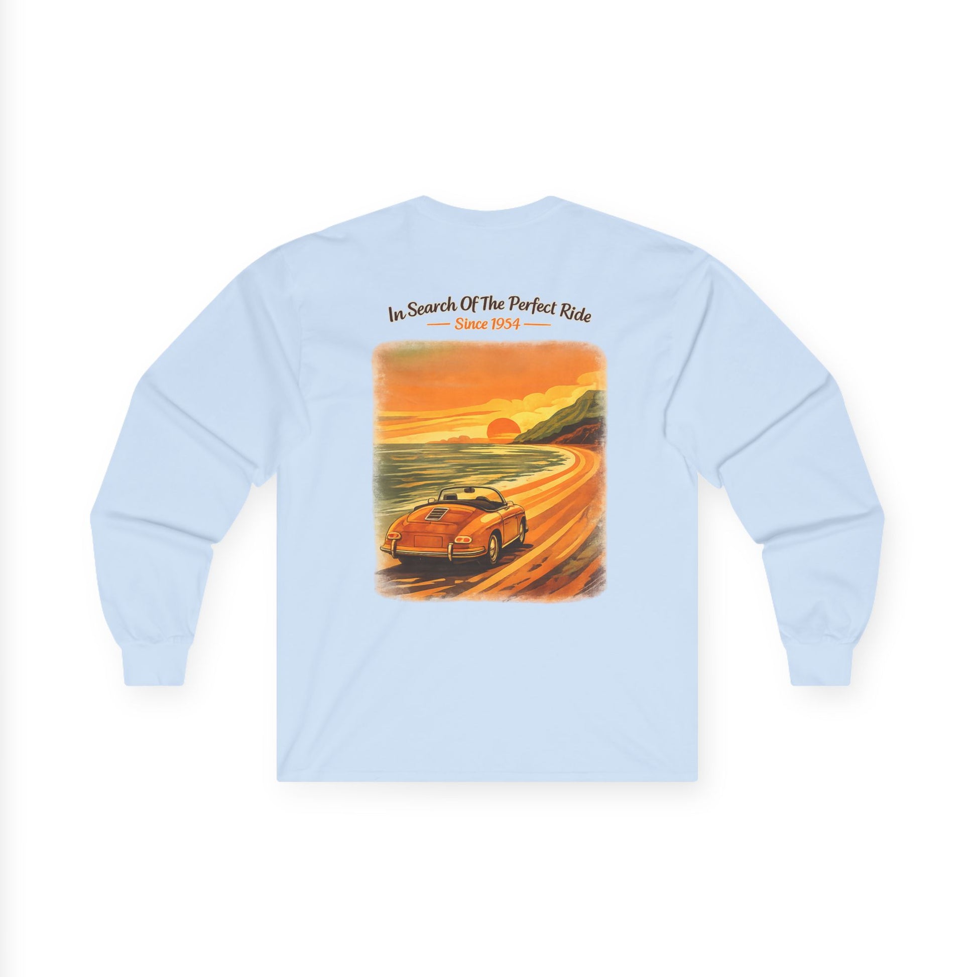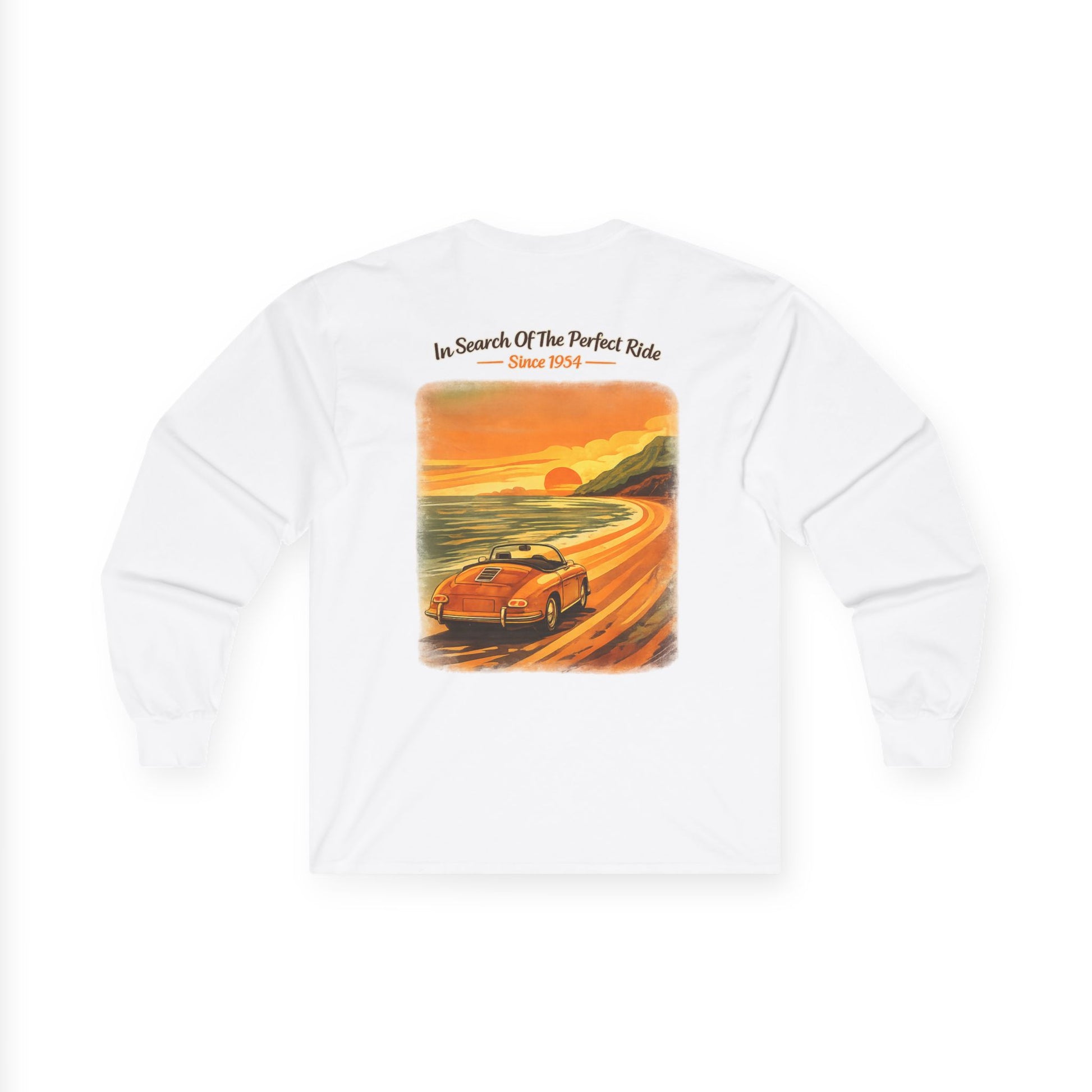 Vintage Sunset Roadster Long Sleeve Tee — "In Search Of The Perfect Ride"